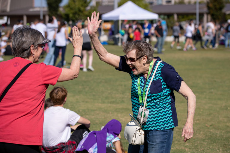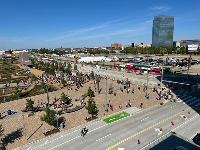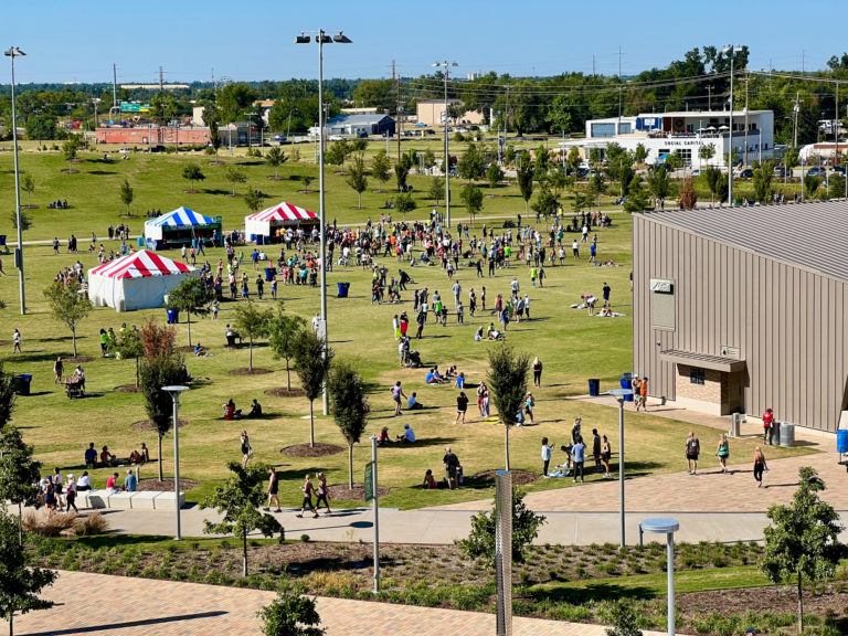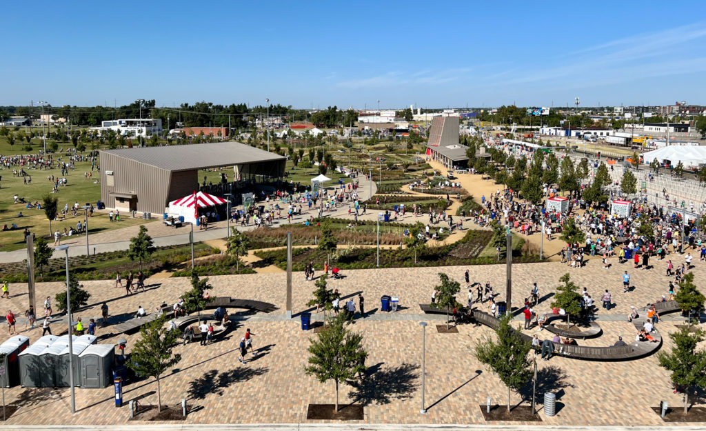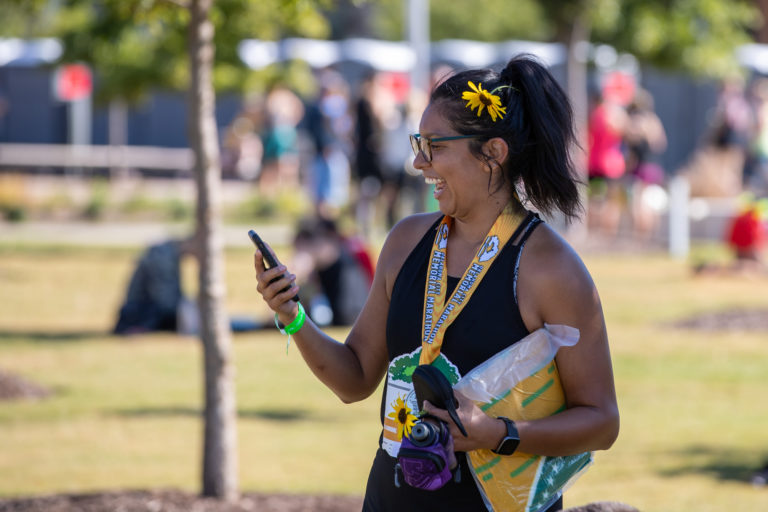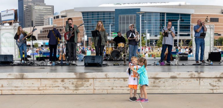 The Marathon course finishes at beautiful Scissortail Park in the heart of downtown Oklahoma City — and that’s where the party starts! Runners, walkers, volunteers, spectators, friends and family all come together as we celebrate the Run to Remember.